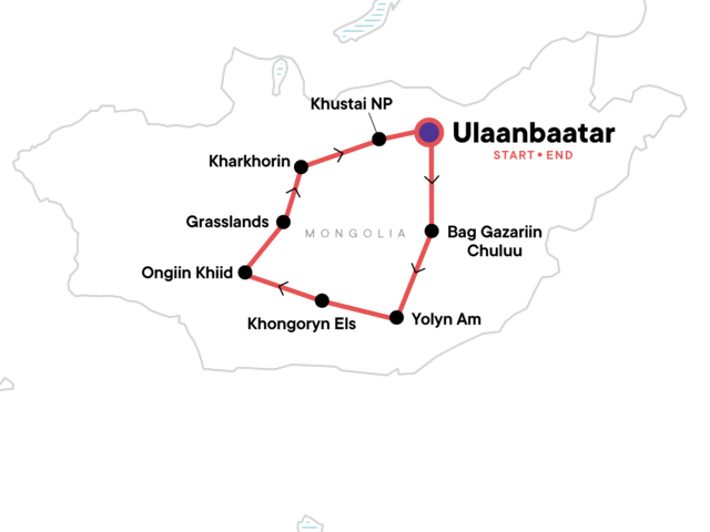 Your Welcome Moment: Welcome Moment - Meet Your CEO and Group. Choir Monastery Visit. Yolyn Am National Park stay and nature Museum visit. Gobi Desert stay. Khongoryn Els Sand Dunes and Flaming Cliffs Visit. Ongiin Khiid Monastery entrance. Mongolian Grasslands nomad camp stay. Karakorum monument entrance. Khustai National Park entrance. All transport between destinations and to/from included activities.
