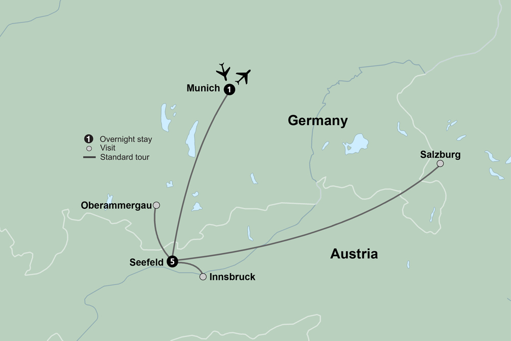 Tour Linderhof Palace, the only palace - out of three - that King Ludwig II lived to see completed. Walk the extraordinary halls that were modeled after Versailles with an expert guide and bask in the luxury of past royals. Your journey continues to Oberammergau. Enjoy a lunch featuring regional cuisine before spending some time on your own getting to know this picture-perfect Bavarian village.