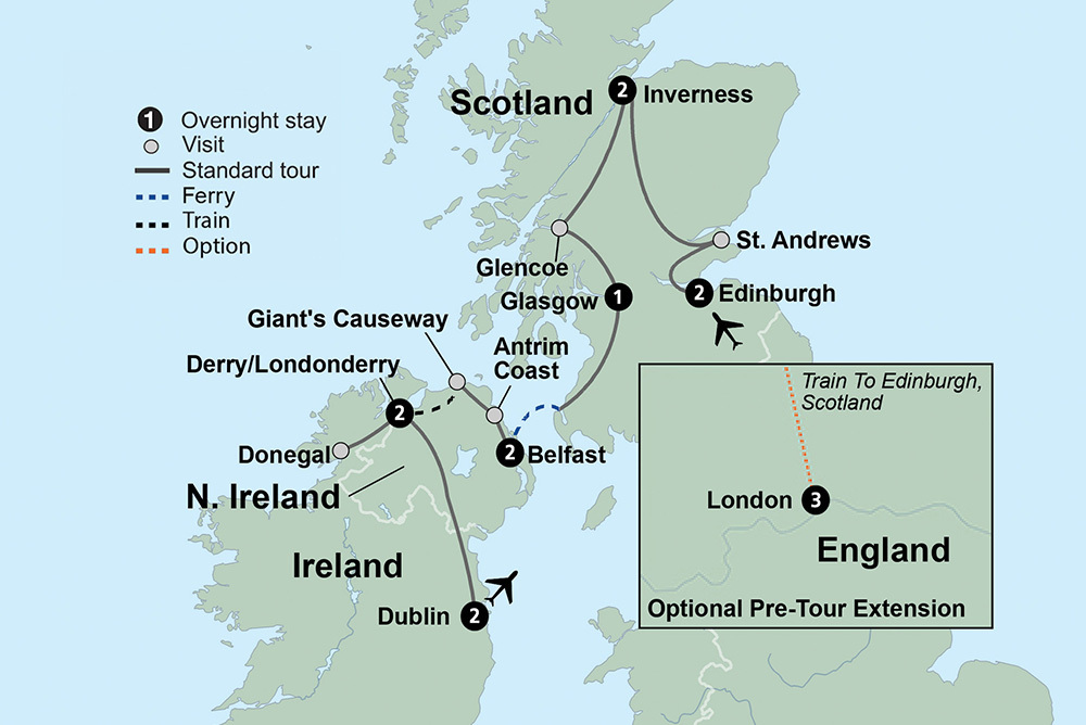 Bask in the warm Celtic culture and majestic scenery of two remarkable lands. Come to know the regal city of Edinburgh on a panoramic tour by coach and by foot. Explore the castles that have shaped Scottish history. Enjoy a traditional evening of Scottish food and entertainment. Visit the Titanic Experience Museum in Belfast and remember the century-old tragedy that shook the world, or visit the Ulster Museum telling human stories through art and historical artifacts. Walk the Giant’s Causeway (UNESCO) and soak up incredible views of the Causeway Coast along the way. Visit Ireland’s bustling capital city of Dublin and tour historic St. Patrick’s Cathedral. From rugged natural beauty to vibrant and historic cities, the diverse charms of Scotland and Ireland await.